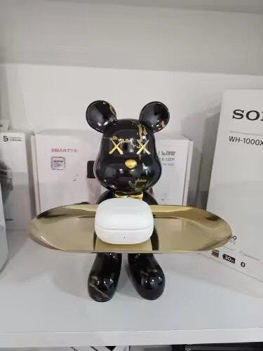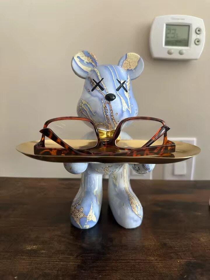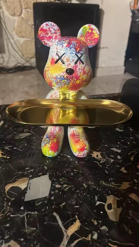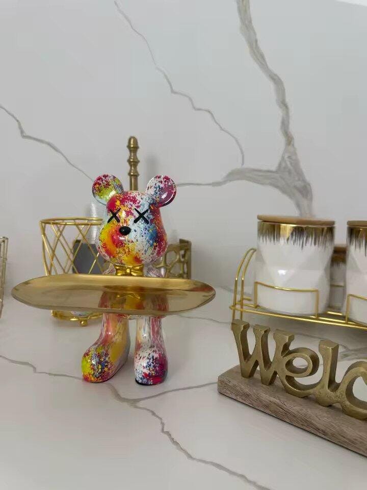 Estatueta Decorativa de Urso Graffiti com Bandeja Luxuosa