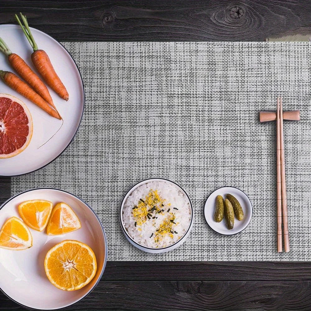 Jogo Americano 4 Peças Feito de Material Durável, Este Conjunto Inclui Quatro Jogos Americanos Para uma Configuração Completa. Fácil de Limpar e Resistente ao Calor, é Perfeito Para Refeições no dia a dia ou Para Ocasiões Especiais.